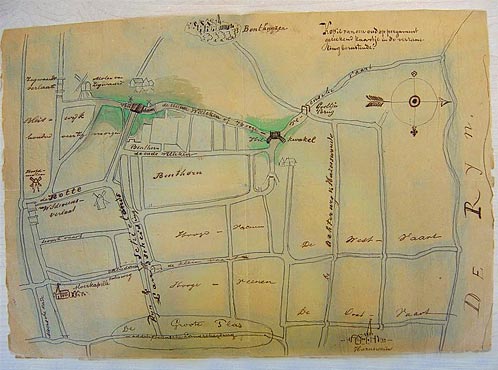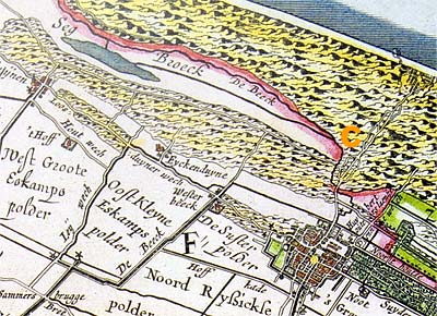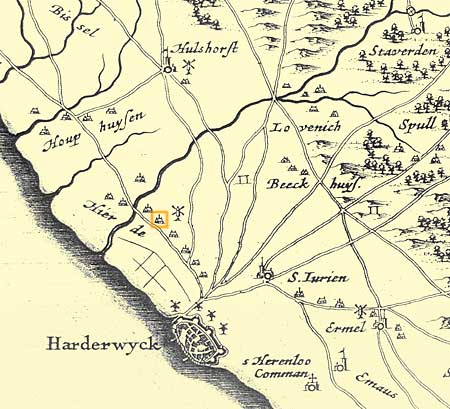 De Wmr. De Graaf (2e Pel.), die onder geneeskundige behandeling te Vinkenhof was geweest, ging met mij naar Nijkerk. Later, bemerkende mijn kaart vergeten te hebben, stuurde ik Korporaal Op te Velde terug om deze te halen en reed verder door. In de verte, naar mijn gevoel N. van Nijkerk, hoorde ik schieten, ik dacht, dat Nijkerk zelf vrij was, en dat mijn Es. [Eskadron] in den N.rand van Nijkerk zat. Ik reed toen door; ongeveer 400 m voor de Prot. kerk van Nijkerk zag ik op den weg voor de kerk een soldaat staan. Ik dacht dat het een Hollander was, dus reed rustig door. Op +- 100 m zag zoowel de post als ik, dat wij vijanden waren. De post begon toen te schieten en wij zochten dekking achter een muur. Uit een straatje achter mij kwamen plotseling een aantal Duitsche soldaten, zij wierpen zich op ons en ontwapenden ons. Wij hadden absoluut geen kans om ons te verdedigen. Wij werden toen meegenomen naar het midden van het dorp, waar wij een langen tijd moesten wachten. Later werden wij met de rest van het Es. weggevoerd naar Barneveld. Verder ben ik steeds in gezelschap van Ritmeester Huisken geweest. Wmr. De Lange had zich ½ uur vóór mijn aankomst te Nijkerk bij het Es. gemeld. Korporaal Op te Velde, die zich den geheelen dag zeer goed had gedragen, werd bij den spoorovergang door vuur teruggewezen. De Duitschers hebben mij nog ondervraagd, doch niet gedwongen om iets te zeggen.