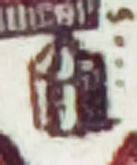 1e zoon: een hark (label; dwarsbalk met drie tanden)